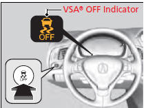 The VSA® may not function properly if tire type and size are mixed. Make sure to use the same size and type of tire, and the air pressures as specified. When the VSA® indicator comes on and stays on while driving, there may be a problem with the system. While this may not interfere with normal driving, have your vehicle checked by a dealer immediately. VSA® cannot enhance stability in all driving situations and does not control the entire braking system. You still need to drive and corner at speeds appropriate for the conditions and always leave a sufficient margin of safety. The main function of the VSA® system is generally known as Electronic Stability Control (ESC). The system also includes a traction control function.