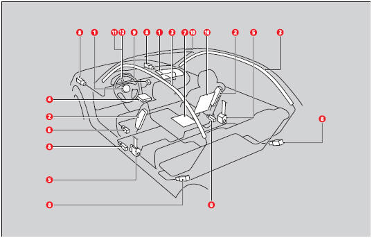7. Weight sensors in the front passenger's seat. The front passenger's airbag will be turned off if the weight on the seat is 65 lbs (29 kg) or less (the weight of an infant or small child).